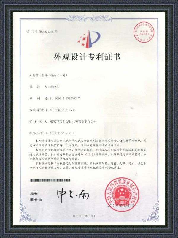 কোম্পানীর দ্বারা উত্পাদিত স্প্রিঙ্কলার হেডগুলি বিশ্বব্যাপী অত্যন্ত বিখ্যাত। এগুলি কেবল চীনে নয়, বিদেশেও বিক্রি হয়েছে। ইতিমধ্যে, কোম্পানি ISO9001-2008 মানের সিস্টেম সার্টিফিকেশন পাস করেছে। কোম্পানীটি তার সদর দপ্তর স্থাপন করেছে লে ইউ ইকোনমিক ডেভেলপমেন্ট জোনে সুন্দর শহর ঝাং জিয়াগাং যা ওরিয়েন্টাল পার্ল নামেও পরিচিত।