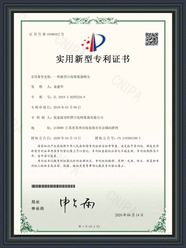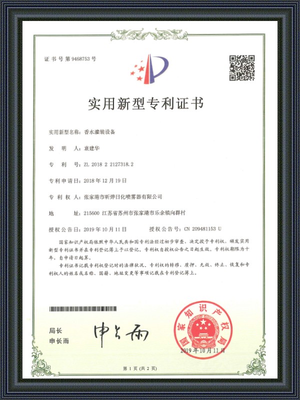 ইউটিলিটি মডেল পেটেন্ট সার্টিফিকেট